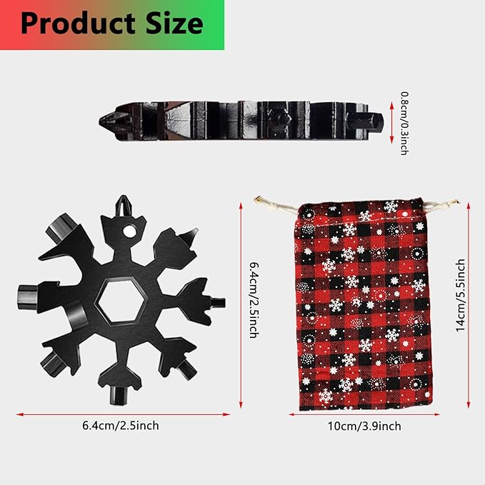 18 in 1 Snowflake Multitool,Stainless Steel Snowflake Tool for Key Chain/Bottle Opener/Flat Phillips Screwdriver Kit/Wrench,Snowflake Handy Tool as Gift for Father, Husband, Boyfriend at Christmas