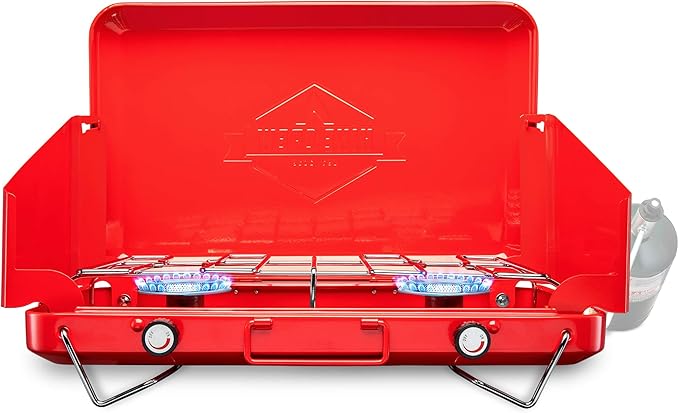 - COOK ANYTHING IN THE GREAT OUTDOORS | Powerful Propane-Powered Stovetop Features [2] 10,000 BTU Burners for Amazing Outdoor Cooking Convenience | Perfect for Preparing Steaks, Burgers, Chicken, Eggs, Bacon, Sausage, Pancakes, Coffee, Tea, Soup & Other Meals While Camping & More