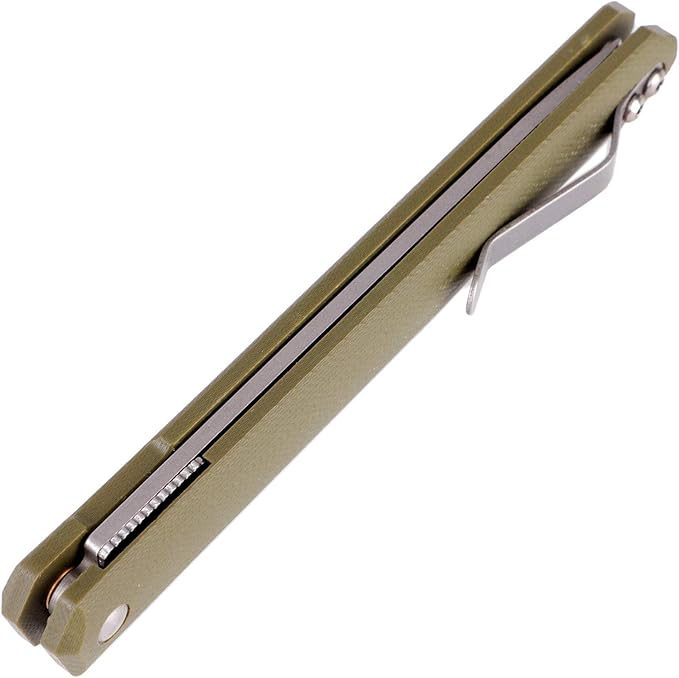 Samior G1035 Small Slim Folding Pocket Flipper Knife, 3.5 inch D2 Tanto Blade, Army Green G10 Handle with Liner Lock Pocket Clip, Gentleman's EDC Knives 1.3oz