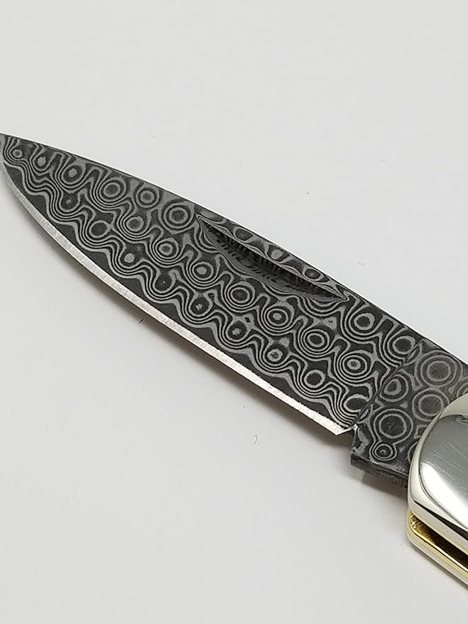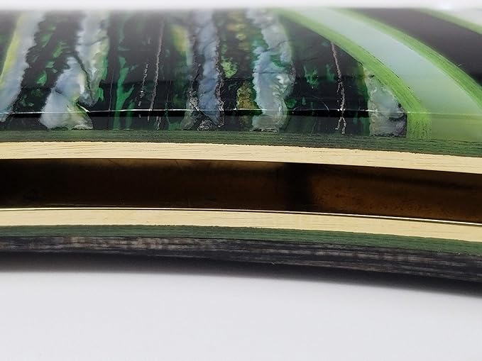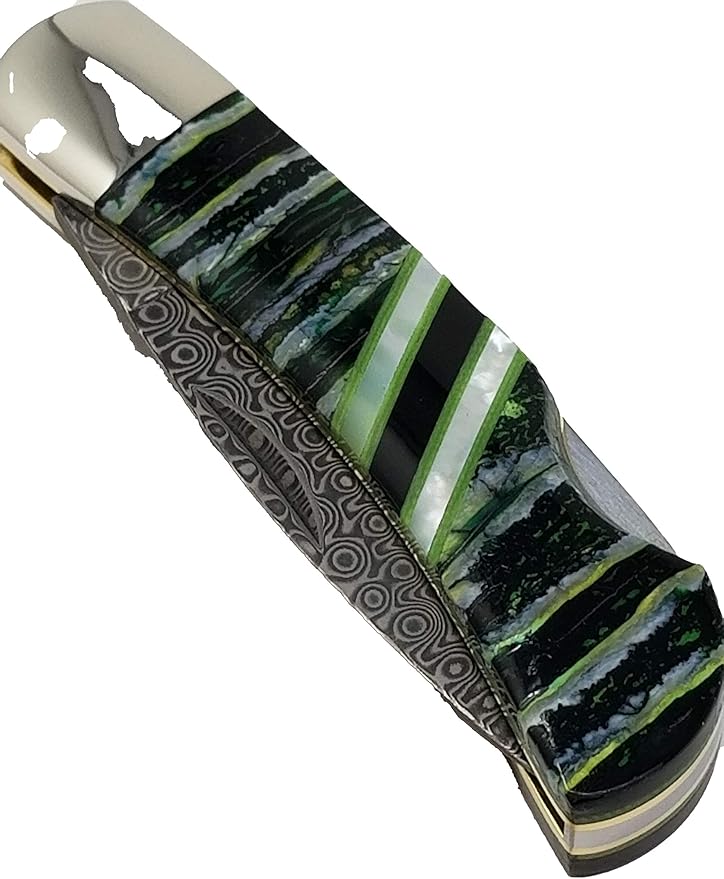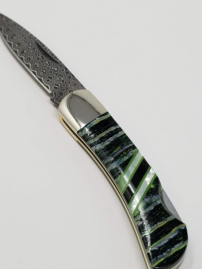 3" Custom Handmade Green G10 and Fossilized Stone Handle on Demascus lockback