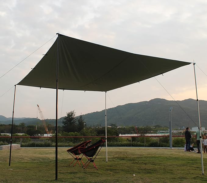- Strong & Lightweight Tarp Pole Set for Large Tarps: The outer diameters of the three sections of each pole are 11.8 in (30 cm), 9.8 in (25cm) and 8.2 in (21cm). This adjustable tarp pole set is made of durable and lightweight aluminum 6061 alloy, suitable for pitching large tarps against unexpectedly heavy rains or winds. The 2-pole set comes with a carry bag and remains lightweight at 2.6 Pounds (1.2 kg)