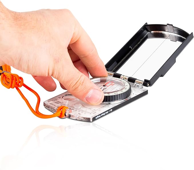 - Sighting Mirror & Protective Cover - Cover keeps the compass safe from damage. Open up the folding cover to reveal a full-sized sighting mirror. Great for military, surveying, bushcraft, and scouting applications.