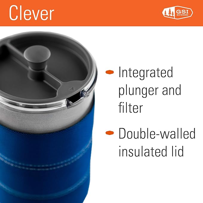 GSI Outdoors, 30 Fl Oz JavaPress, French Press Coffee Maker for Camping and Travel, Blue