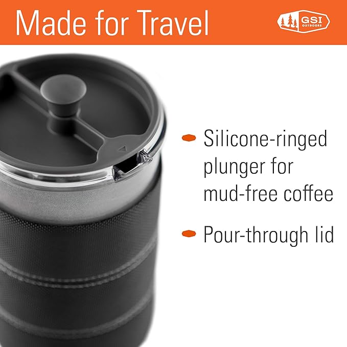 GSI Outdoors, 30 Fl Oz JavaPress, French Press Coffee Maker for Camping and Travel, Graphite