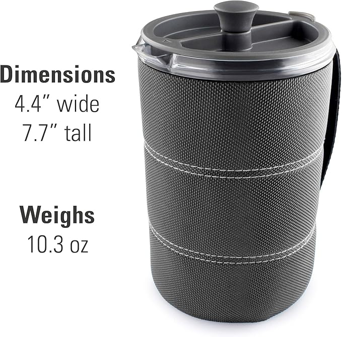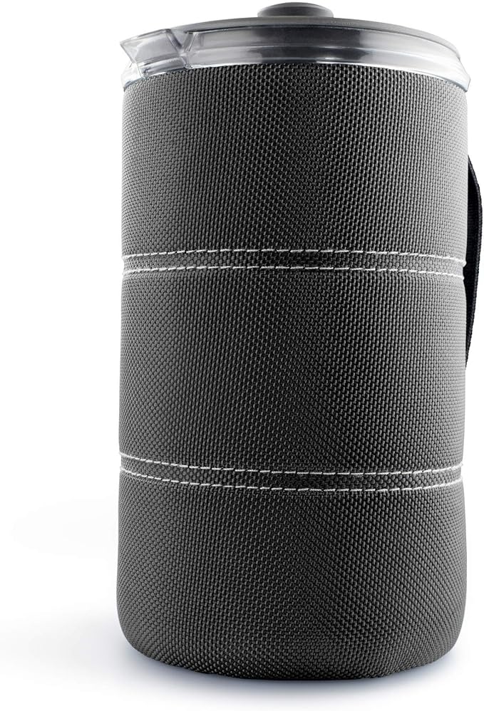 - Includes a water-resistant nylon cloth sleeve with a handle, protecting your hands from the heat while helping keep your coffee as hot as you like it
