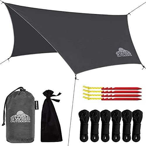 Rain Fly Tarp | Waterproof Tent Camping Shelter Canopy | Lightweight Easy Setup for Hammock, Backpacking or Camp Gear | Premium Quality 12 x 9 ft | Gray