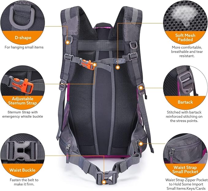 - Multifunctional & Convenient Straps: The straps of the hiking backpack can be used for tying up your pack or hanging a sleeping bag, mat, hammock, tripod, and other travel gears