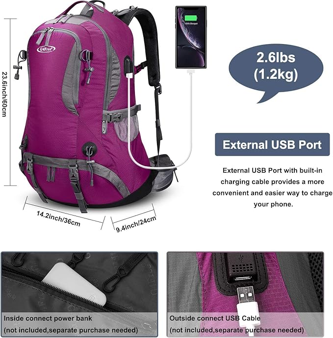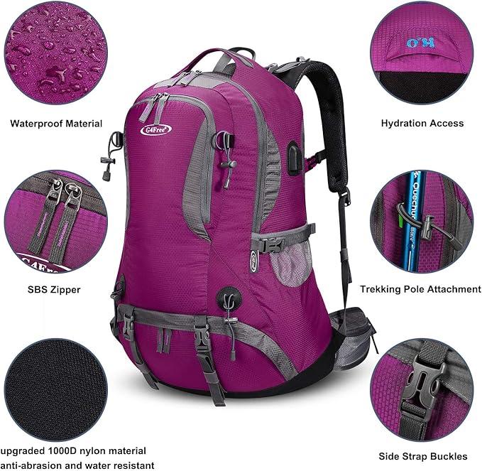 - 【Include Rain Cover】The hiking backpack with rain cover can protect your stuff from the rain. There is a big room for a Hydration Bladder, your iPad, mobile phone, A4 documents, books, magazines and other accessories; Multiple attachment and straps for hanging tools, trekking pole, tents, sleeping bags, and other items. And all these items can be protected from rain!