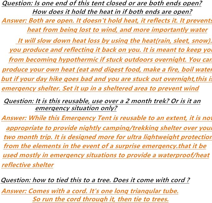 - 2 person mylar thermal shelter: It come with 59 X 98.4inch 2-person mylar thermal shelter, large size can support full body protection. Practical and convenience. It's a tube tent that comes with a "rope"/ridge line to run under the top so it will keep its shape