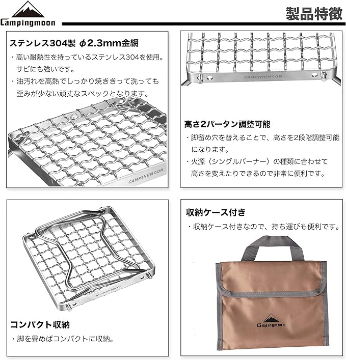 CAMPINGMOON Portable Folding Camping Campfire Grill over Fire Split Stoves 304 Stainless Steel (ZJP 1011)