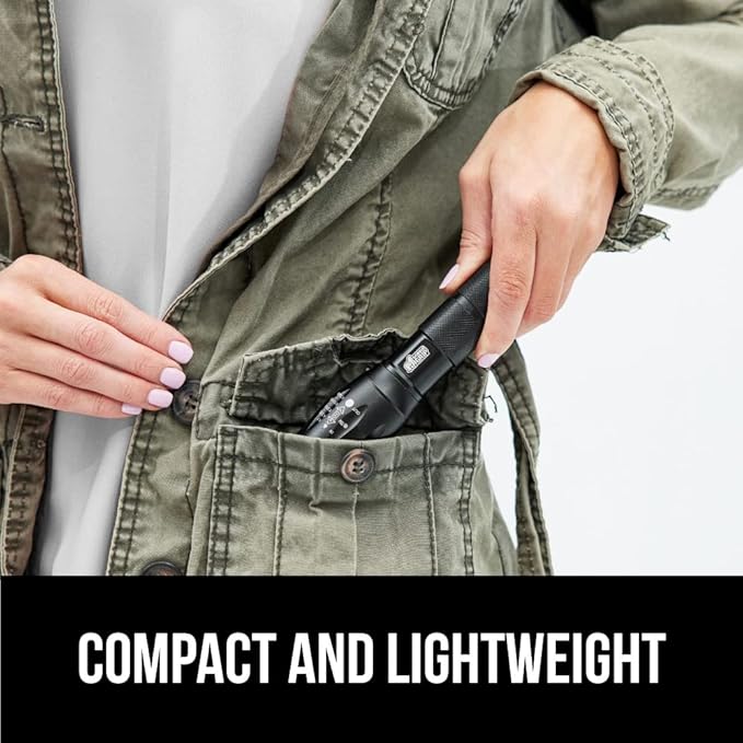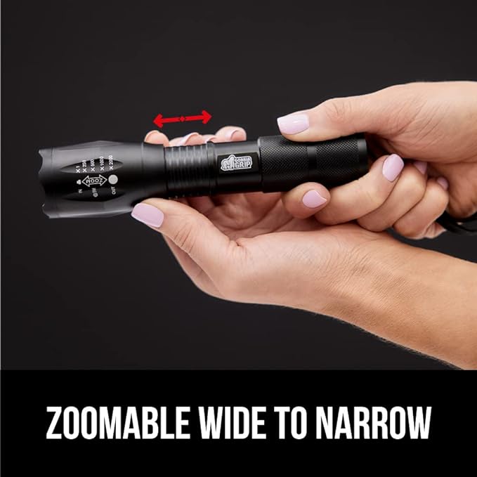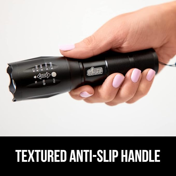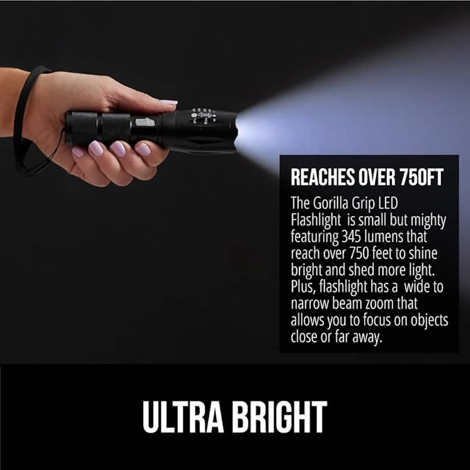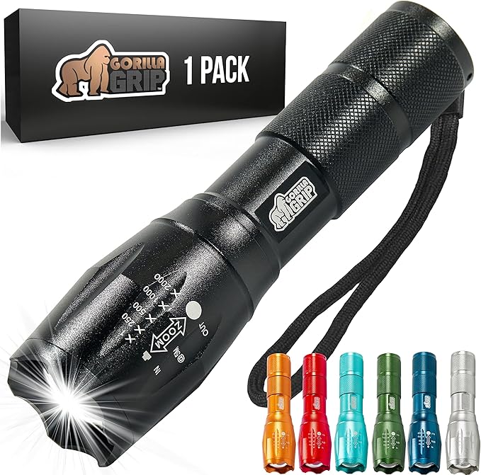Gorilla Grip Powerful LED 750 FT Water Resistant 5 Adjustable Mode Tactical Flashlight, High Lumens Ultra Bright Battery Life Zoom Flashlights, Small Camping Car Mini Flash Light Accessories, Black