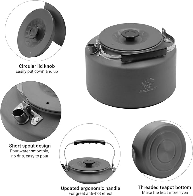 Bulin 1.6L/2.2L Camping Kettle Aluminum Alloy Open Campfire Coffee Tea Pot Fast Heating Outdoor Gear for Boiling Water Ultralight Portable Hiking Picnic Travel