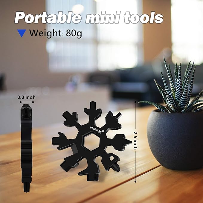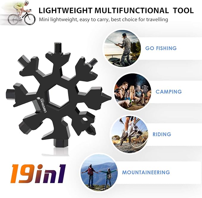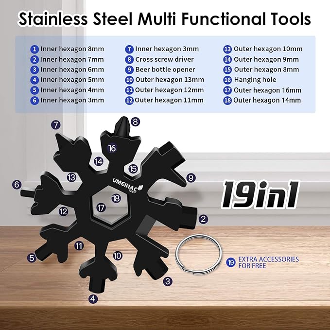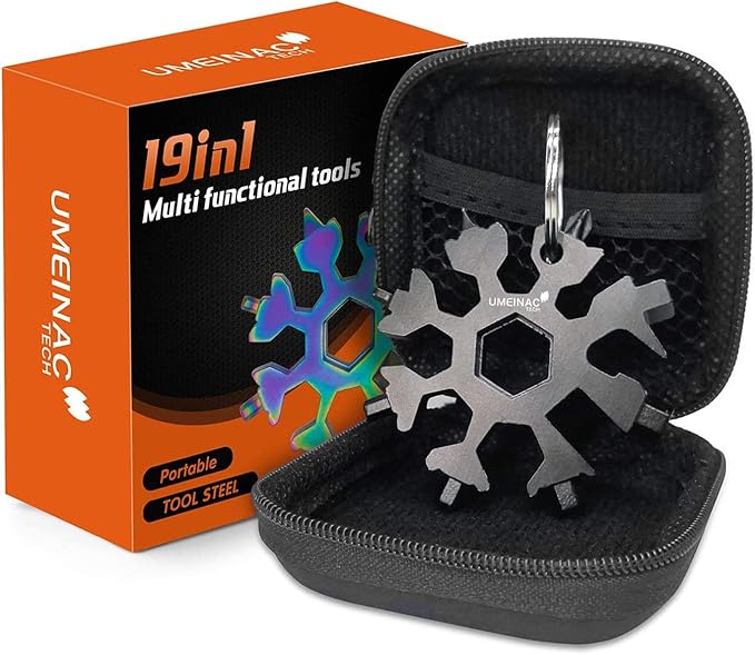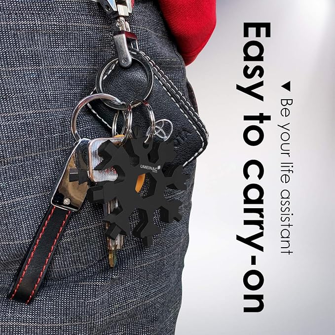 - 🛠【MULTI TOOL KEYCHAINS FOR MEN】Snowflake multitool includes 19 multipurpose tools, such as bottle opener, flathead screwdriver, Phillips screwdriver, hex wrench, flathead screwdriver, hex wrench, can opener, etc. The multifunctional gadgets gifts for men can meet most of the daily needs.