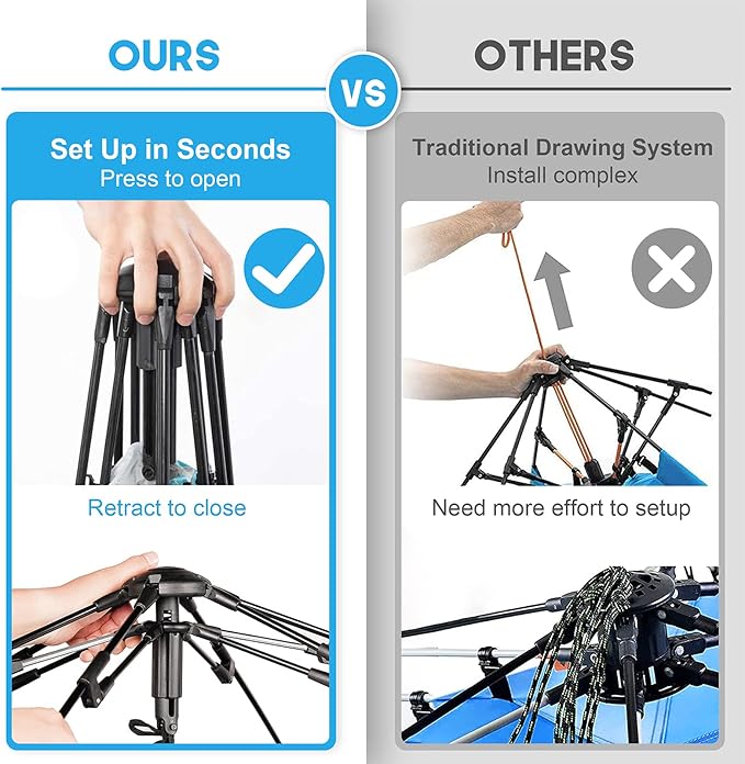- Easy Set Up & Portable: Quick pop-up mechanism allows setting in under 30 seconds! Light weight, packs down to 36" x 5" for easy carrying and storage.