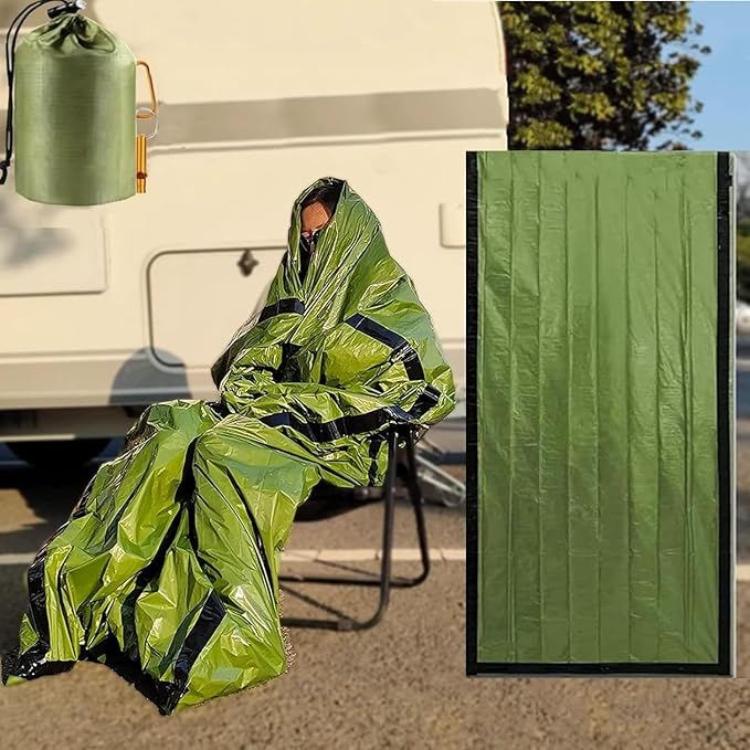 • Multipurpose use: It can be a survival emergency bag, poncho, emergency shelter and more, suitable for your out bag.Emergency sleeping bags perfect for emergency situations where warmth or protection from all-weather conditions is required. Helps prevent hypothermia and shock by retaining/reflecting up to 90% of a user's body heat