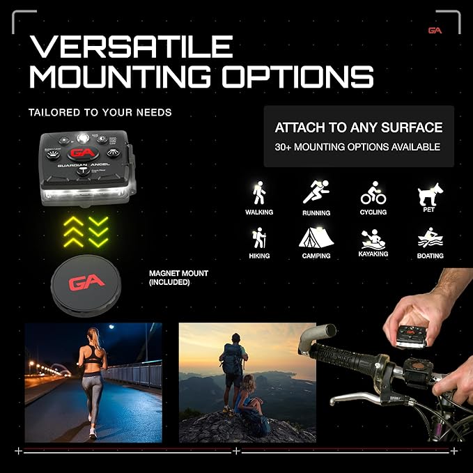 - ๐ฉ๐ฒ๐ฟ๐๐ฎ๐๐ถ๐น๐ฒ ๐ ๐ผ๐๐ป๐๐ถ๐ป๐ด: Each Micro device features a built-in rare-Earth magnet that works with all GA mounts as part of the patented Magnet Mounting System. Securely attach to clothing with included magnetic mount, or secure in seconds to your bike, helmet, dog collar, leash, stroller, backpack, tent, vehicle and more with the purchase of activity-specific mounts. Two built-in screw mounts add extra security. One light offers 1,000s of uses and can be mounted to anything.