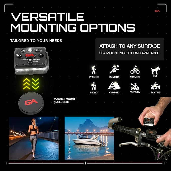 - ๐ฉ๐ฒ๐ฟ๐๐ฎ๐๐ถ๐น๐ฒ ๐ ๐ผ๐๐ป๐๐ถ๐ป๐ด: Each Micro device features a built-in rare-Earth magnet that works with all GA mounts as part of the patented Magnet Mounting System. Securely attach to clothing with included magnetic mount, or secure in seconds to your boat, kayak, SUP, bike, helmet, dog collar, backpack, tent, vehicle & more with the purchase of activity-specific mounts. 2 built-in screw mounts add extra security. One light offers 1,000s of uses and can be mounted to anything.