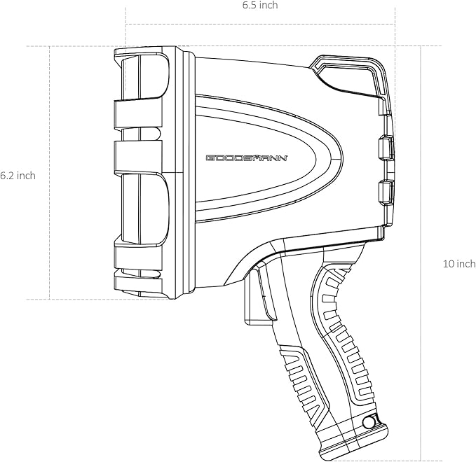 - LIGHTWEIGHT: This GOODSMANN handheld spotlight is designed to be portable, lightweight and easy to use. The ergonomic handle ensures comfortable operation and reduces fatigue during prolonged use. It will be the best choice for outdoor handheld use