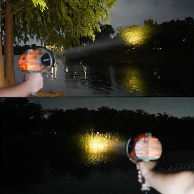 - CAMO DESIGN: The camouflage pattern on the handheld spotlight allows it to blend harmoniously with the natural environment, providing the user with the advantage of stealth and concealment. This covert illumination helps to maintain a low profile during activities such as hunting, wildlife observation and tactical operations, and minimizes disturbance to the surrounding environment