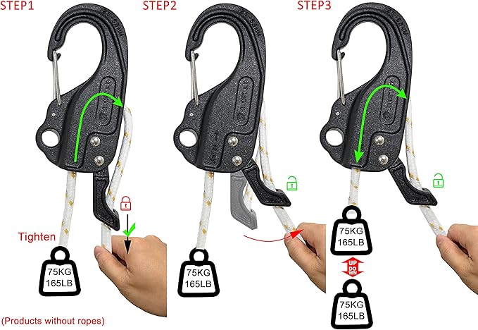 - 【Rugged Construction】- With cam cleat structure, the product can firmly hold on to those static or moving objects. Also, it has a single-pack load limit of 165 lbs (75kg).