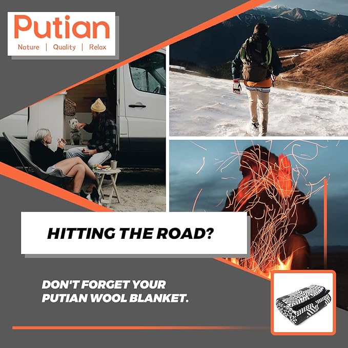 - 100%ODOR FREE - PuTian large wool blanket will keep you and friends cozy while camping, at a tailgate, football game, or just as an emergency blanket. Even the tallest person can use this lightweight camping blanket comfortably