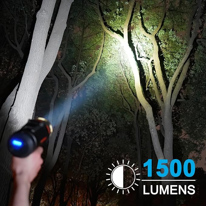 - LIGHT WEIGHT: This 1500 lumen waterproof handheld spotlight weighs only 1.09lb. It has a sturdy stand on top that allows it to be propped up for hands-free lighting, and a rescue wrist strap to prevent it from floating away if you happen to be using it in the water