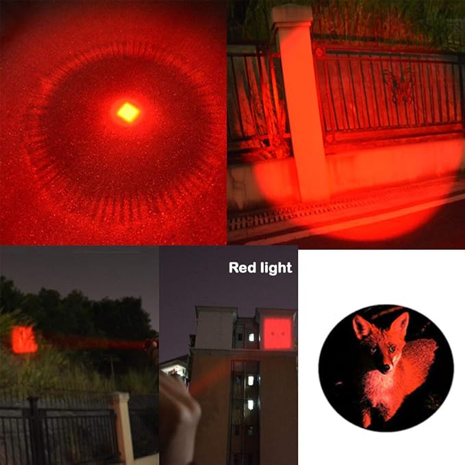 - Usage of Red flashlight and Green flashlight: Human's eyes are most sensitive to the red or green range of light, but the red light or the green light is less sensitive for the animals in the dark, like hogs, coyotes, fox...so you can find them without disturbing them. They are good for night hunting observation.