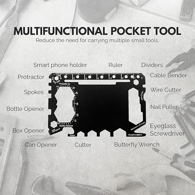 - Tool Box in Your Pocket - Gain access to basic hand tools and multipurpose tools in just one grab! It’s a nifty credit card-sized wallet multitool keychain that gives you access to a ruler, screwdrivers, a wrench, and more.