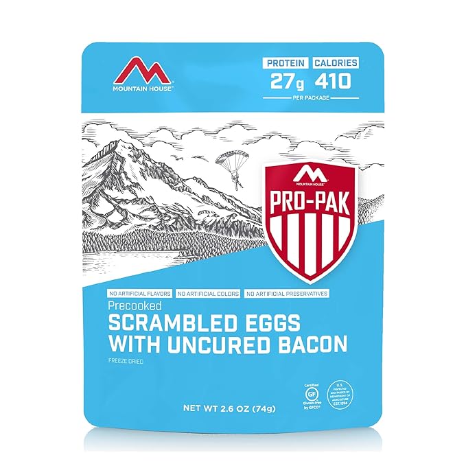 Mountain House Scrambled Eggs with Bacon Pro-Pak | Freeze Dried Backpacking & Camping Food | One Serving | Gluten-Free