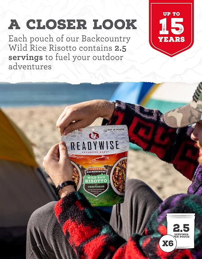 - VERSATILE USES: Beyond camping and survival, ReadyWise Wild Rice Risotto is perfect for home storage, quick family dinners, and last-minute meals. It's a versatile addition to your pantry.