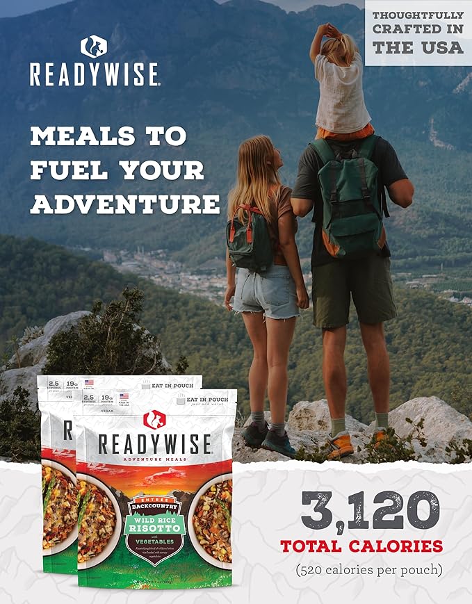 READYWISE - Adventure Meal, Wild Rice Risotto, 15 Servings Total, Pack of 6, Emergency Preparedness, Freeze Dried Food, MRE, Snack Pack or Emergency Food, Backpacking, Camping, Hiking, and, Survival