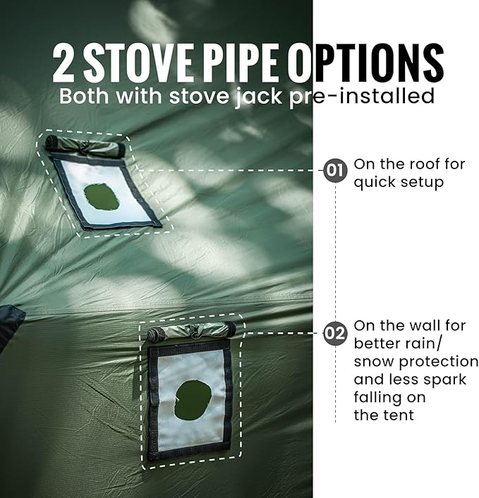 - β πππ’π’π€ππ πππ§π’ ππππ‘π©ππ§: A hot tent built for hammock hangers to go for winter camping, compatible with all general sized tent stoves and all kinds of camping hammocks, you can sleep toasty warm without sleeping bag & underquilt with this and a stove in,1 stove jack on the top and 1 on the side wall for different stove pipe angles