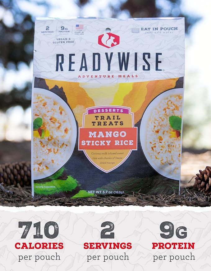 - VERSATILE USES: Beyond camping and survival, ReadyWise Mango Sticky Rice is perfect for home storage, quick family breakfast, and last-minute snacks. It's a versatile addition to your pantry.