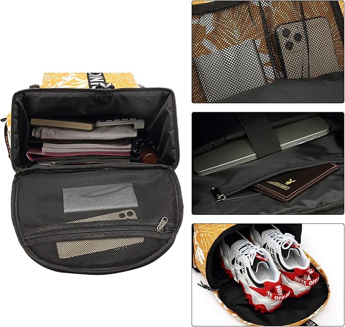 - ❤【Large Capacity】 Roomy Space with practical pockets provides you enough items storage and helps you organize them easily, including 1 front pocket/1 main large compartment/2 side pockets (for bottle and umbrella)/1 shoe compartment. The main compartment contains 1 upper mesh zip pocket, 1 notebook compartment, 2 zip pockets, and 2 slots, can hold your iPhone, iPad, pen, keys, wallet, magazine, clothes, and also be placed in cameras, power bank, etc.