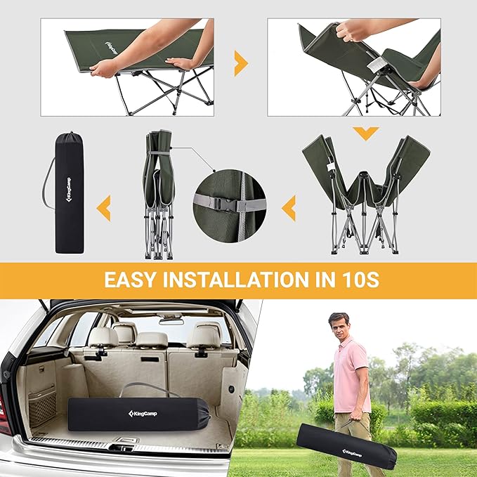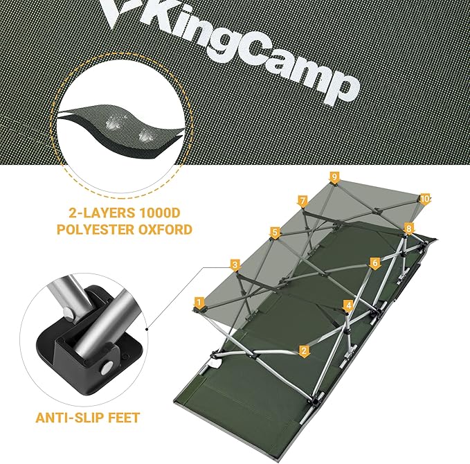 KingCamp Folding Camping Cot for Adults,Portable Sturdy Sleeping Cot with Carry Bag Outdoor Lightweight Camping Bed Support 264 lbs,Large Outdoor Foldable Travel Cots for Camping Beach Home Nap