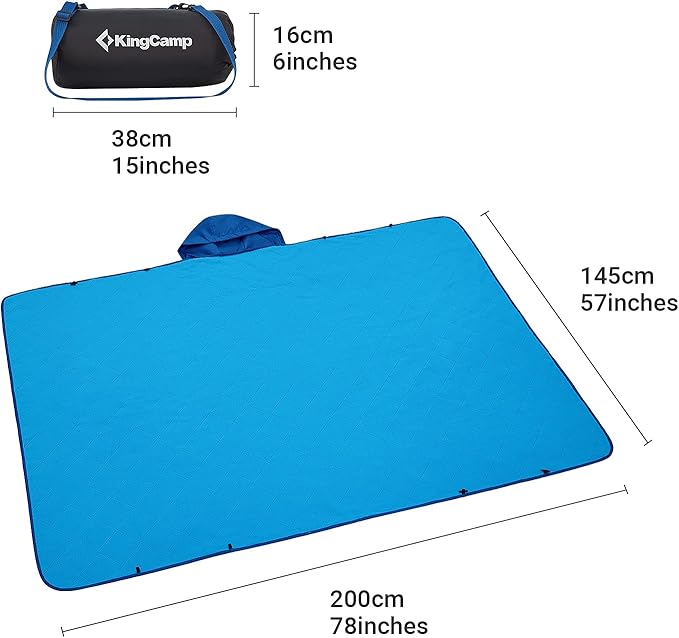 - 【Multifunction Stadium Blanket 】KingCamp waterproof blanket can be used as a picnic mat to keep out the cold and dampness of the ground, as a sleeping bag when camping, this thick hooded blanket can also be used as a poncho for rain, snow and wind ,One blanket meets your multiple needs.