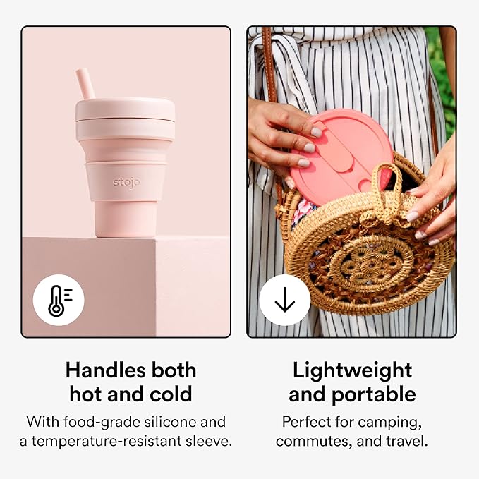 - Handles both hot & cold: Whether it’s hot tea or iced lattes, Stojo’s food-grade premium silicone and temperature-resistant sleeve can handle it all.