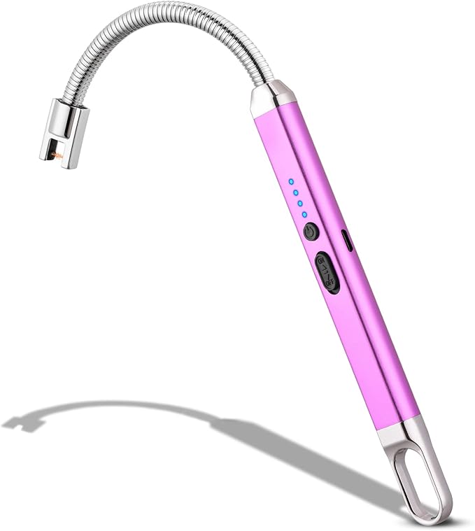 MEIRUBY Lighter Electric Candle Lighter Birthday Gifts for Women Mom Wife Men, Long Electronic Rechargeable USB Lighter Arc Windproof Flameless Lighters for Candle Camping BBQ (Purple)