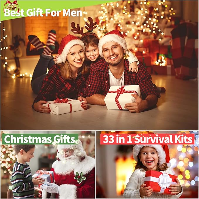 Gifts for Men Dad Husband Boyfriend Him, Survival Kits 33 in 1, Survival Gear and Equipment, Essentials Cool Gadgets for Camping Hiking Hunting Outdoor Adventure, Cool Birthday Ideas