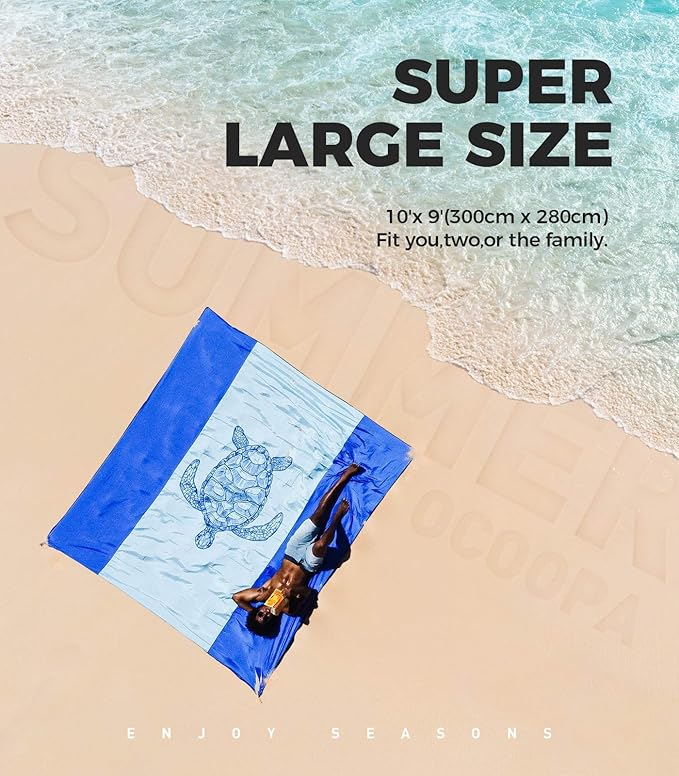 OCOOPA Beach Blanket Waterproof Sandproof, 10'X 9' Extra Large, Soft and Sturdy, Sand Free, Light Weight and Portable, Perfect for Travel Camping, Picnic, Beach Vacation, Marine Life Series