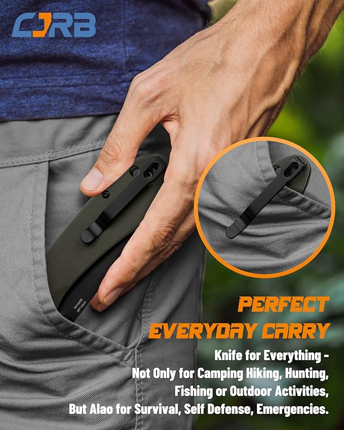 CJRB CUTLERY Folding Knife Feldspar(J1912) AR-RPM9 Powder Steel Black PVD Blade G10 Handle Pocket Knife EDC Knife,Army Green Handle