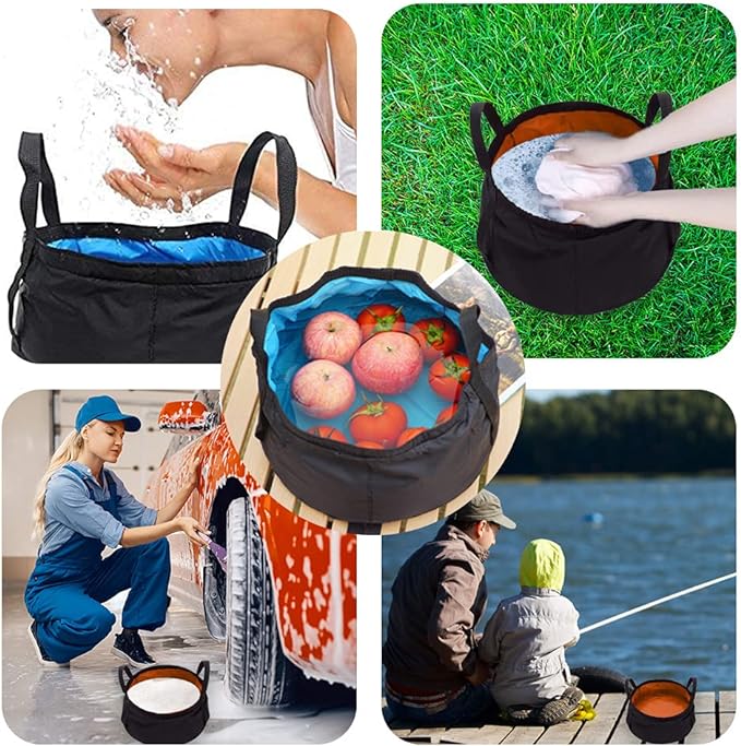 - 【Multi-purpose Use Camp Sink】: It can also be used as foot soaks bucket, backpacking bucket, camping wash sink, fishing bucket, car washing container, storage of small objects container, hiking bucket, family picnic wash bucket;It can also be used as a travel dog bowl, horse feed bucket