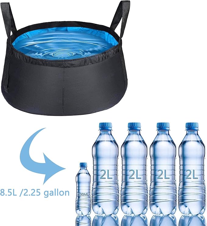 - 【Multi-purpose Use Camp Sink】: It can also be used as foot soaks bucket, backpacking bucket, camping wash sink, fishing bucket, car washing container, storage of small objects container, hiking bucket, family picnic wash bucket;It can also be used as a travel dog bowl, horse feed bucket