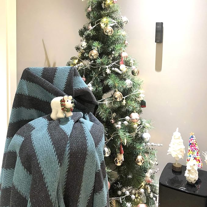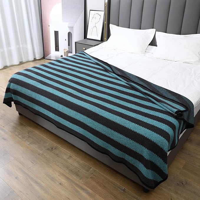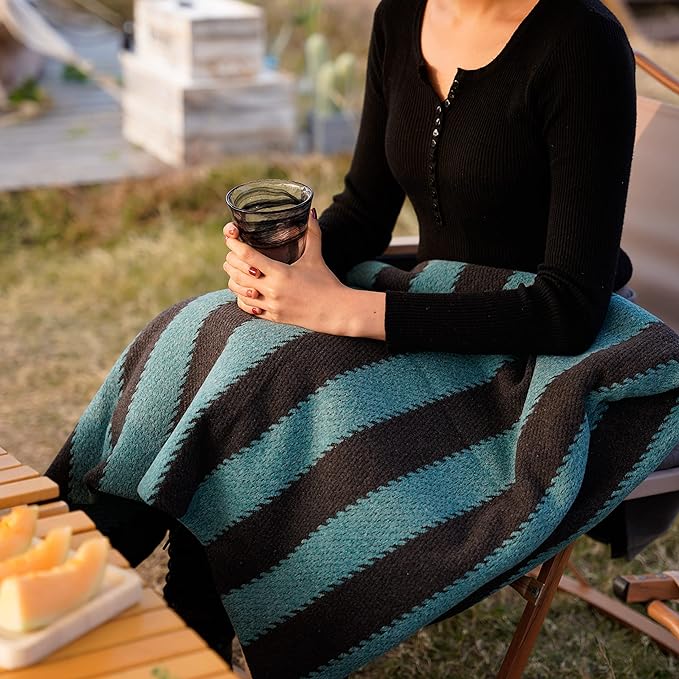 PuTian Merino Wool Blanket - 63" x 51" Thick Warm Soft Twin Bed Throw - Great for Camping, Outdoors, Travel, Car, Couch All Seasons Blue Stripe