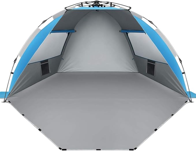 Oileus X-Large 4 Person Beach Tent Sun Shelter - Portable Sun Shade Instant Tent for Beach with Carrying Bag, Stakes, 6 Sand Pockets, Anti UV for Fishing Hiking Camping, Waterproof Windproof, Blue