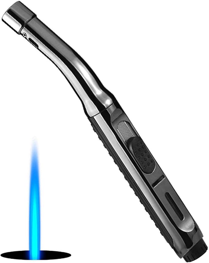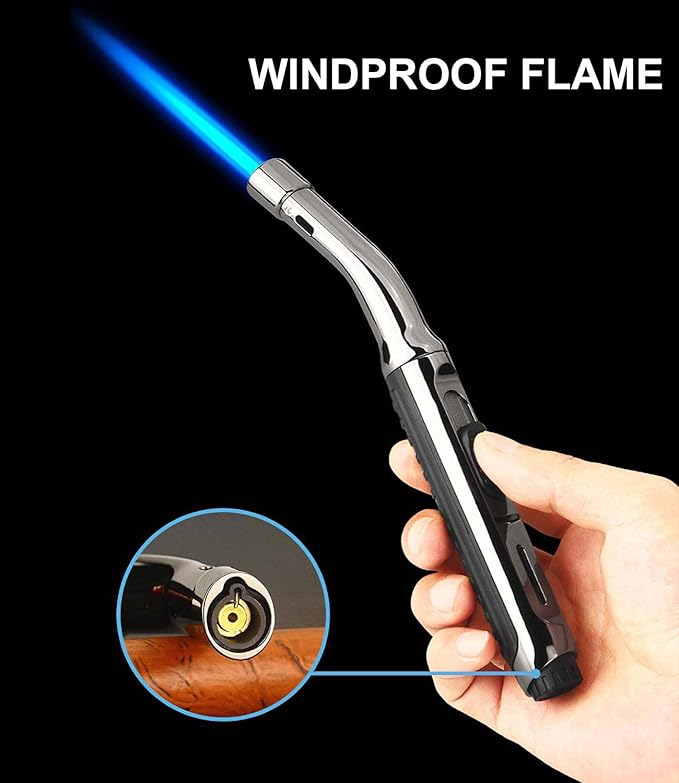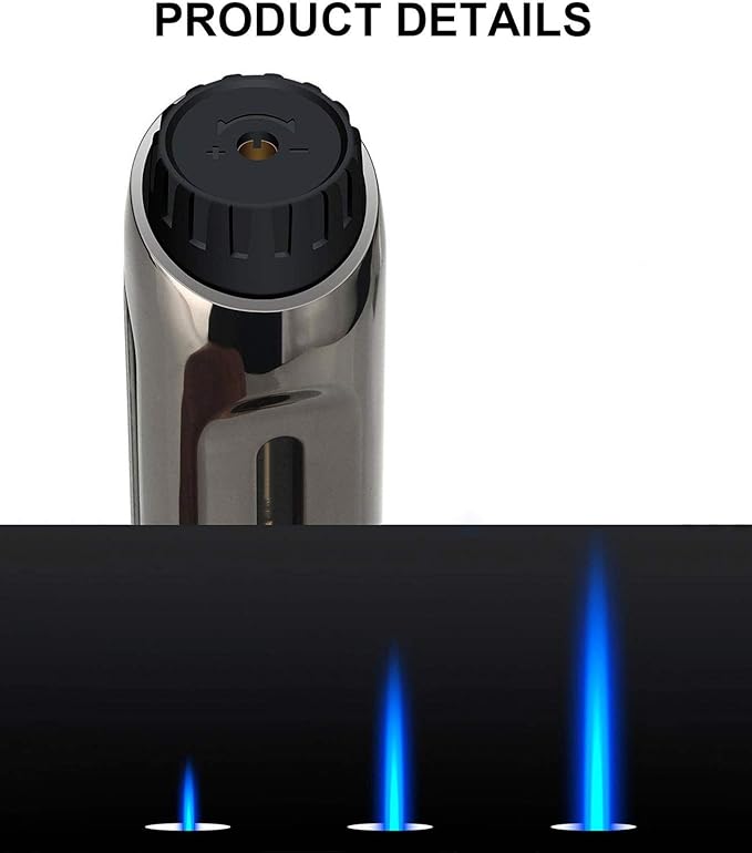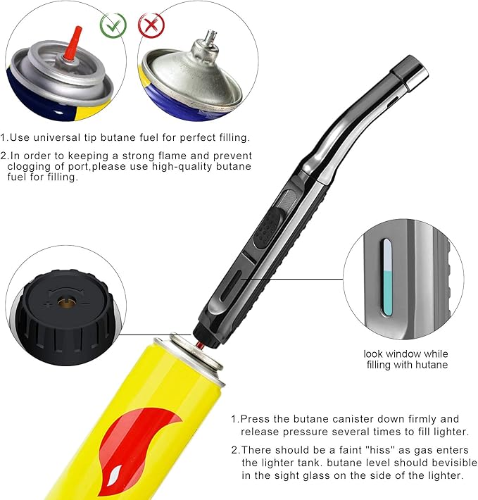 - ★【Flame Lock】: Jet gas lighter has flame lock,location ring turn left,get continuing flame.These grill lighters also feature a adjust the flame level via fuel adjustment valve that alters the size of your flame so you can tailor it to specific tasks