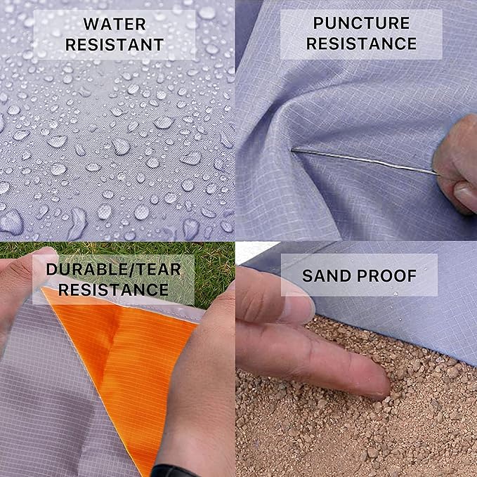 - Puncture & Tear Resistant: Made from Rip Stop Polyester Fabric, our pocket blanket waterproof dries up extremely fast and easy to clean. This pocket blanket travel is sand proof and has the best puncture and tear-resistant material that protects you from twigs, rocks, insects, etc.