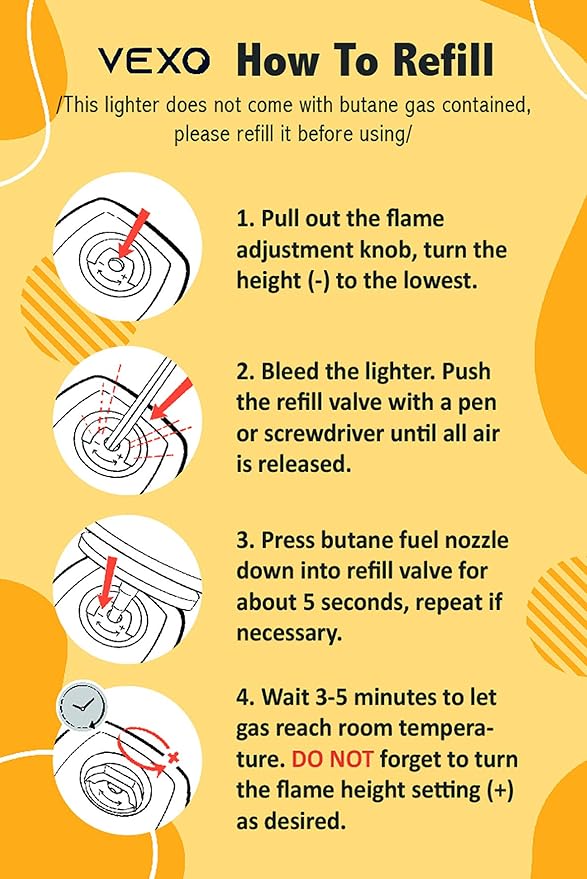 - Flame Adjustment & Sleek Body: The flame adjuster sits on the bottom of the lighter, easily adjust the flame intensity as per your needs. The lighter has a high-quality zinc alloy body with a large refillable butane tank and easily refilled.