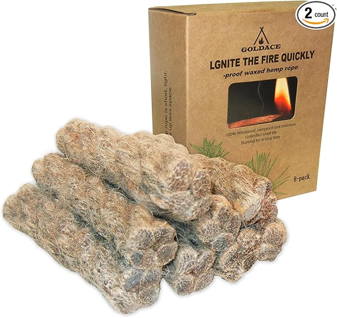 GOLDACE100% Windproof, Rainproof and Moisture- Emergency Survival Tool Kits| Long-Lasting Fire Starters for Campfires| Camping Cooking Kindling Tinder| fire Rope Hemp core| Unlimited Shelf Life