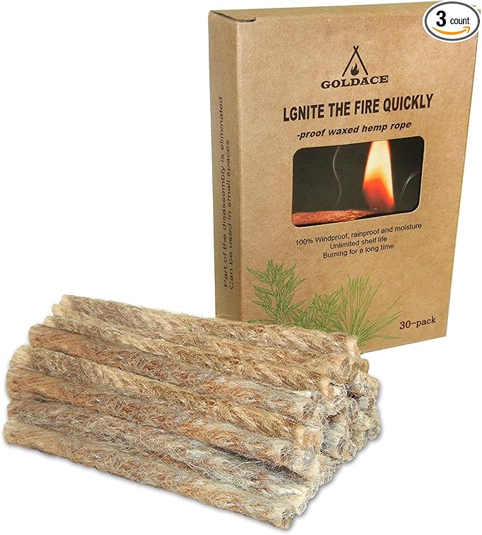 GOLDACE100% Windproof, Rainproof and Moisture- Emergency Survival Tool Kits| Long-Lasting Fire Starters for Campfires| Camping Cooking Kindling Tinder| fire Rope Hemp core| Unlimited Shelf Life